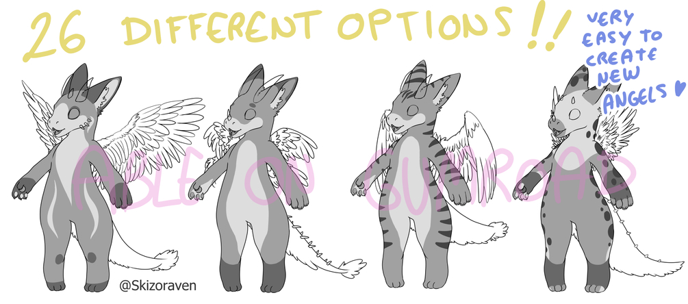 Make your own Angel Dragon with LOTS of options for body markings, wings, tails, horns, and details ^^